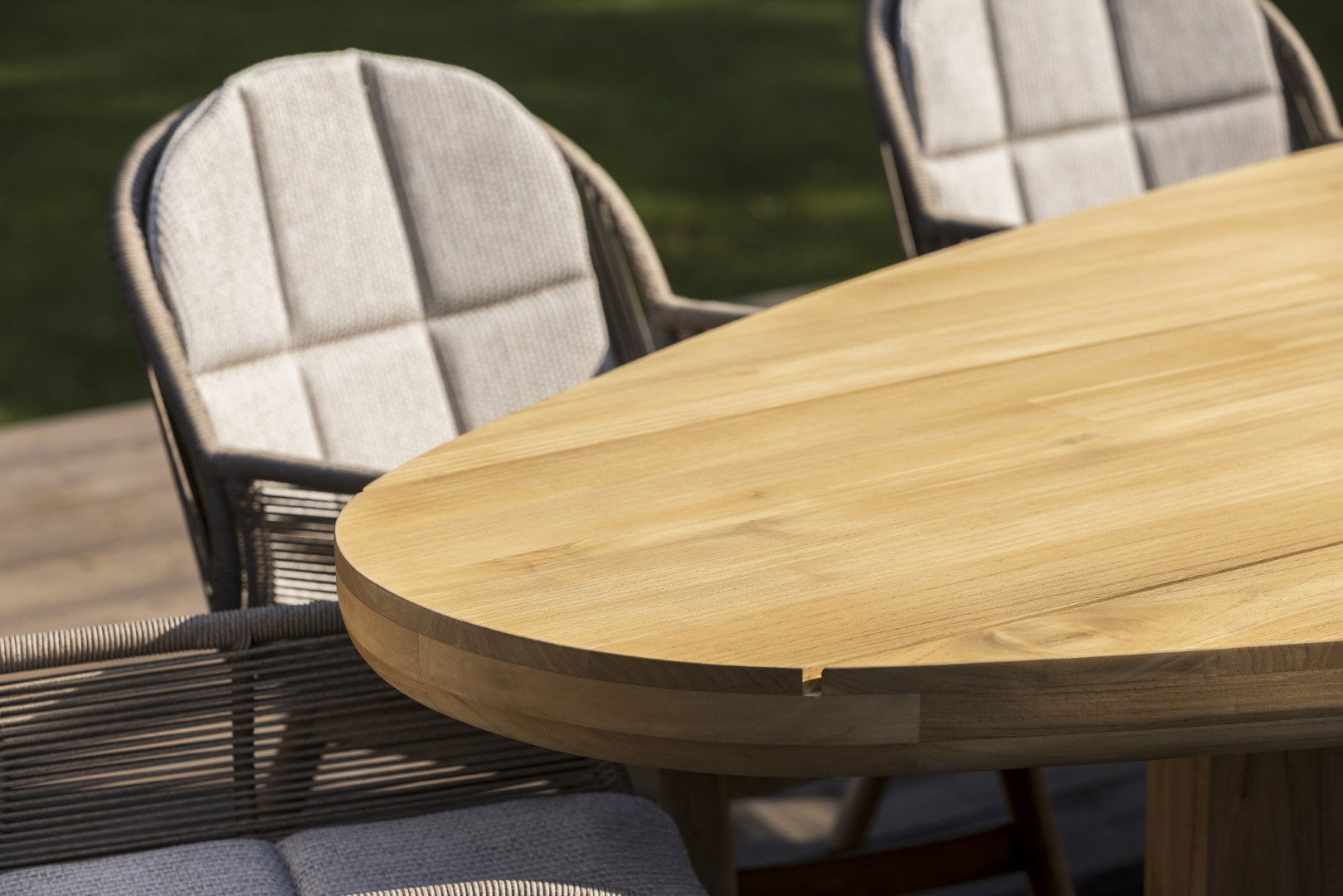 Studio Borek heeft Bolzano ontworpen met een krachtige, rustige vormgeving: een eigentijdse keuze die zorgt voor een luxe uitstraling met een moderne twist. Het strakke lijnenspel en de verfijnde afwerking geven de tafel een stijlvolle aanwezigheid, zonder te overheersen. Daardoor past Bolzano moeiteloos in zowel een minimalistische als een warme, meer natuurlijke buitensetting.