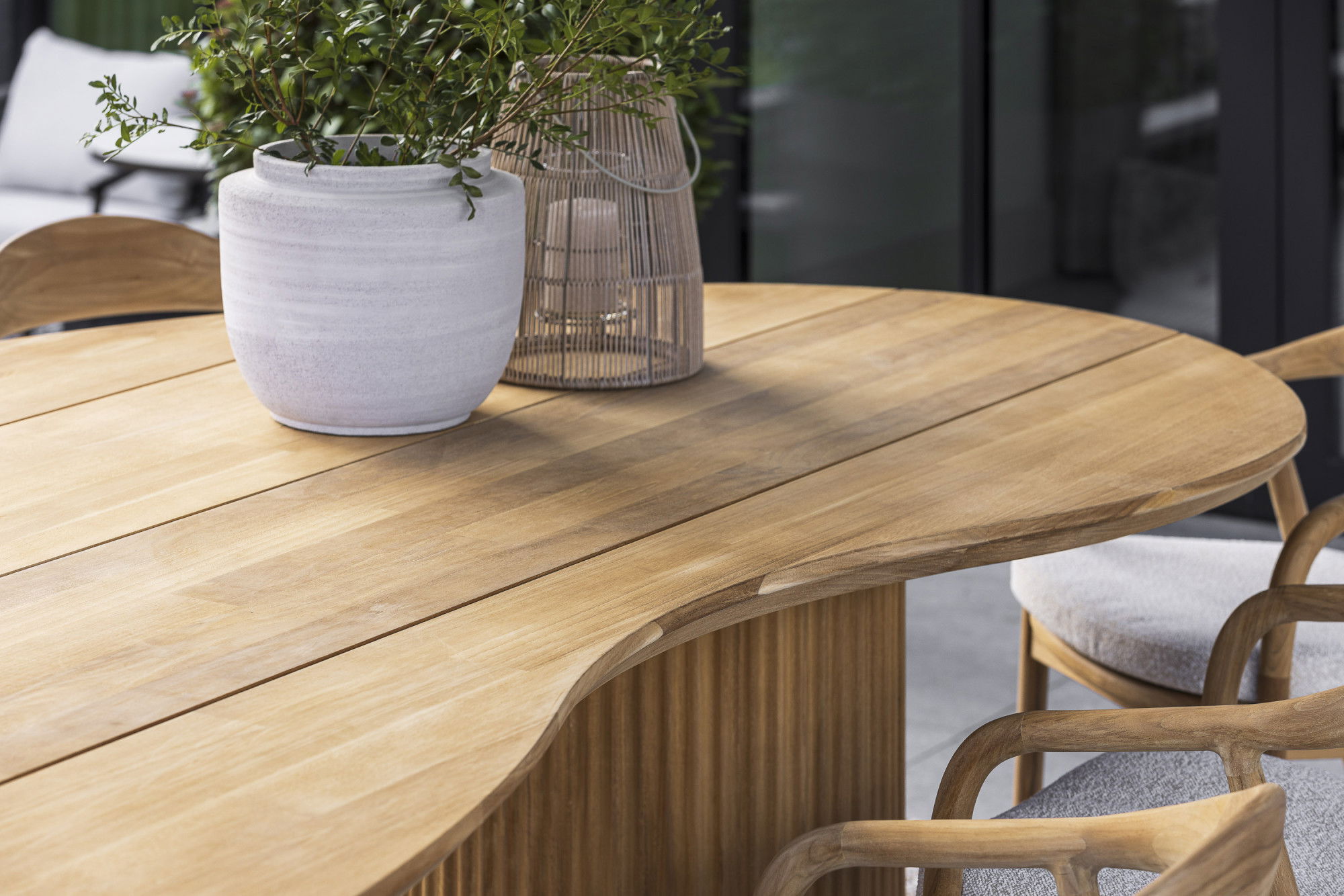 De Venezia collectie introduceert een nieuwe vormentaal binnen Max en Luuk. De tafels zijn ontworpen als vloeiende landschapselementen, met zachte contouren die iedere buitenruimte een natuurlijke elegantie geven. Met zowel dining als low dining modellen, uitgevoerd in organische vormen en het karakteristieke kidney silhouet, brengt Venezia een speels maar verfijnd ritme aan rond elke zitopstelling.