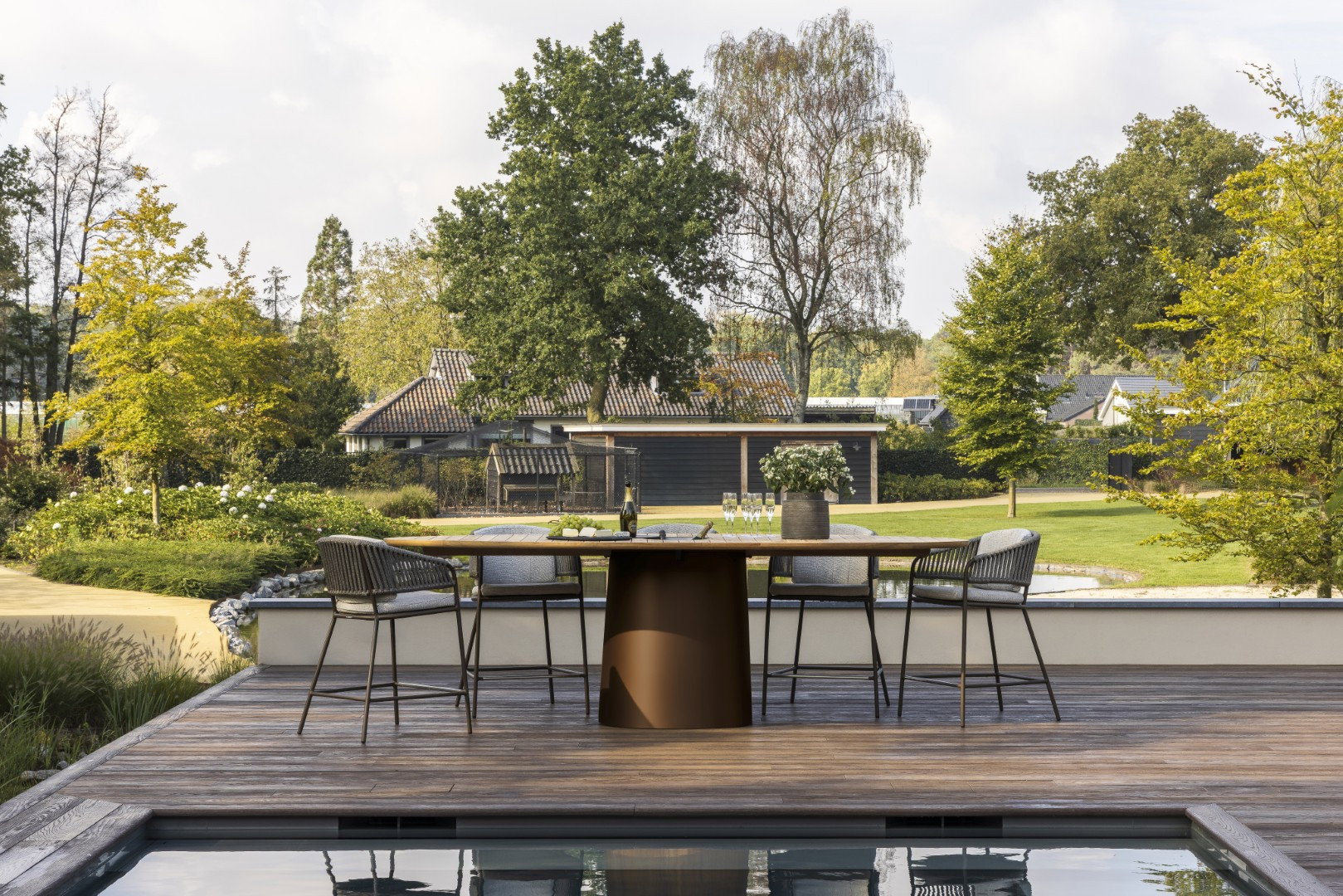 Bei der Einführung der Marke lag der Schwerpunkt zunächst auf Sonnenschirmen. Im Laufe der Zeit hat sich das Verhältnis jedoch umgekehrt, und heute präsentieren wir jedes Jahr in Zusammenarbeit mit führenden Designern eine umfangreiche Kollektion an Gartenmöbeln. Von kompletten Essgarnituren bis hin zu Liegestühlen am Pool bieten wir eine vielfältige Auswahl an stilvollen Optionen für das Leben im Freien.