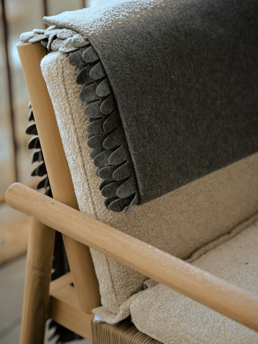 Die Terrassen bilden eine Erweiterung des Innenbereichs und sind mit einer ausgewogenen Mischung aus Sitzkomfort und Funktionalität ausgestattet. Die Lorenza-Lounge-Sessel von Max & Luuk spielen dabei eine zentrale Rolle und laden zu entspannten Momenten im Freien ein. In Kombination mit Beistelltischen von Borek und YOI entsteht ein harmonisches Ganzes, in dem sich Materialien und Formen gegenseitig verstärken.