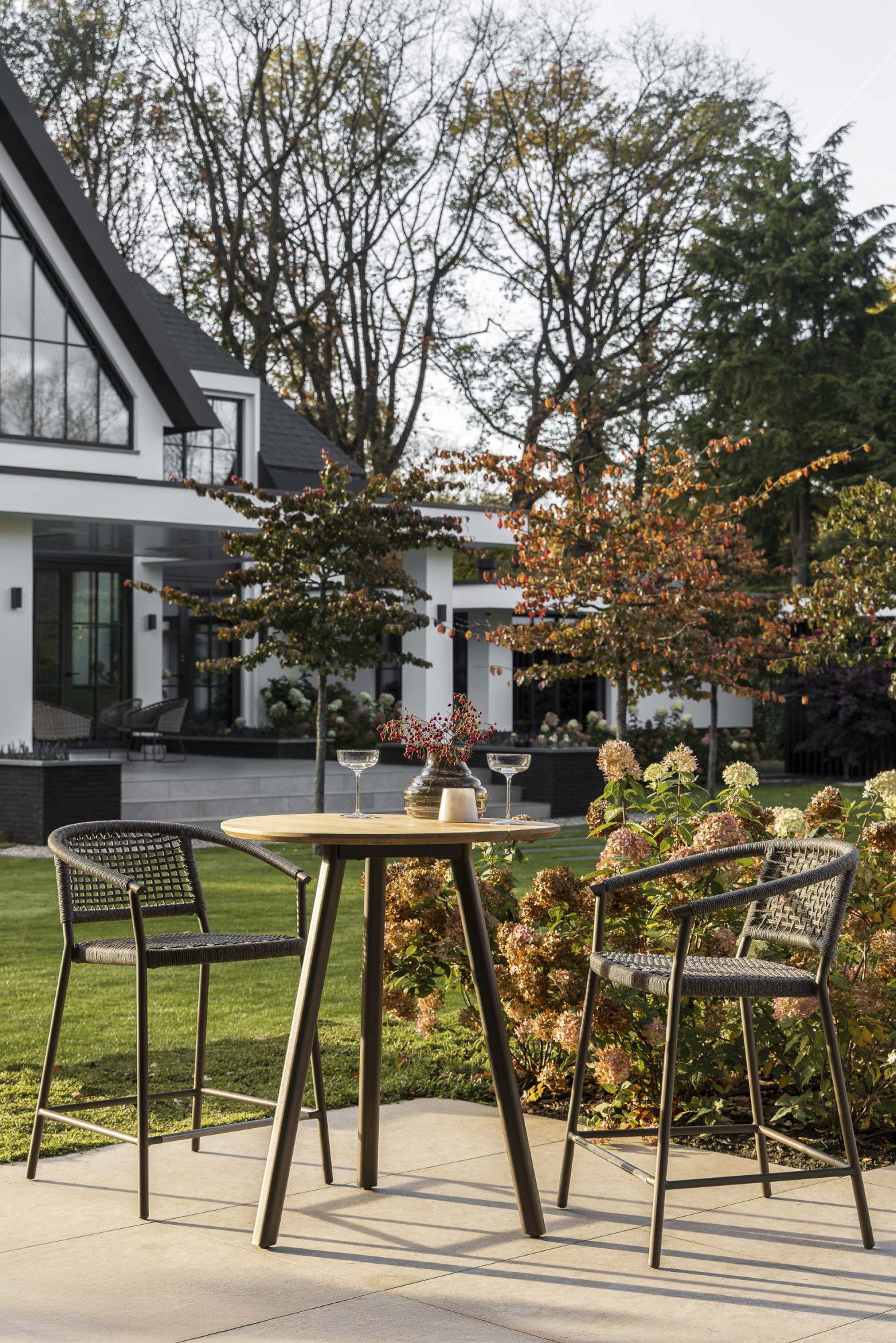 Die Variante High Dining unterscheidet sich vom Dining Chair durch ein stabileres Gestell, in das eine bequeme Fußstütze integriert ist. Dies macht den Stuhl ideal für entspannte Momente an einem hohen Esstisch, an dem Sie bequem eine Mahlzeit oder ein Getränk genießen können. Beide Versionen des Emilia-Stuhls sind eine perfekte Wahl für alle, die bei ihren Outdoor-Möbeln sowohl Stil als auch Funktionalität suchen.