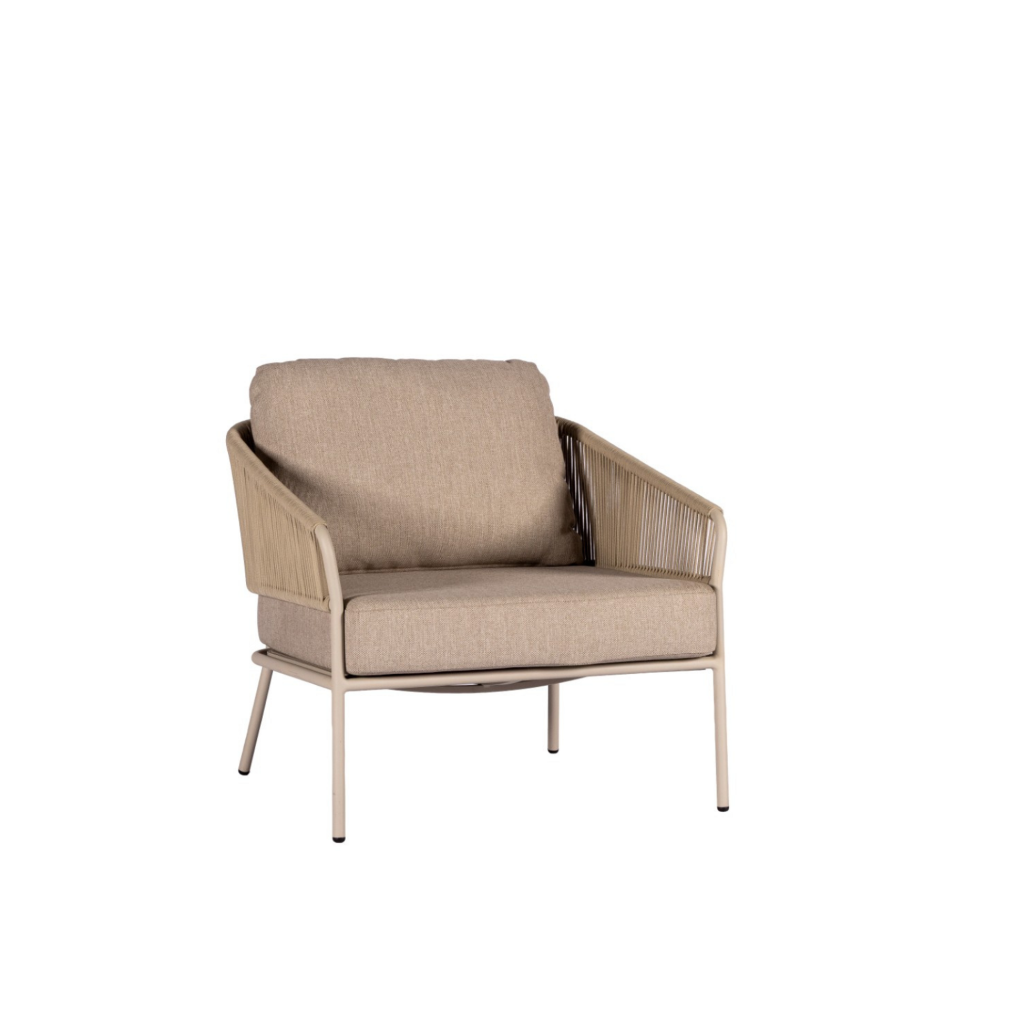 Der Forio Sessel bringt modernes Outdoor-Design auf seine Essenz zurück: klare Linien, komfortable Proportionen und Materialien, die den Anforderungen des Außenbereichs mühelos standhalten. Das Design wirkt ruhig und raffiniert, bleibt dabei aber stets einladend. Ein Sessel, der keine Aufmerksamkeit fordert, sondern sie ganz selbstverständlich erhält. Das schlanke Aluminiumgestell bildet eine stabile Basis und ist in den Farbtönen Salix und Bronze erhältlich. Salix verleiht dem Sessel eine leichte, zurückhaltende Ausstrahlung, während Bronze Wärme und Tiefe für ein stimmungsvolles Ambiente hinzufügt. In beiden Ausführungen unterstreicht das Gestell die klare, moderne Silhouette des Designs. Das sorgfältig verflochtene Rope, farblich auf das Gestell abgestimmt, sorgt für eine dezente Textur und eine fein grafische Wirkung. Dieses Detail verleiht dem Sessel Charakter, ohne die ruhige Gestaltung zu unterbrechen, und entfaltet seine Qualität besonders aus der Nähe betrachtet. Die großzügigen Sitzkissen in Flax Beige bieten hohen Sitzkomfort. Sie sind weich, stützend und aus Allwetter-Materialien gefertigt, sodass Form und Optik über viele Saisons hinweg erhalten bleiben. Ob entspanntes Zurücklehnen oder ein ruhiger Moment im Freien – der Forio Sessel lädt dazu ein, länger zu verweilen. Mit seinem ausgewogenen Design und dem angenehmen Komfort ist der Forio Sessel eine selbstverständliche Ergänzung für jeden Außenbereich – zeitlos, elegant und gemacht, um das Leben im Freien mühelos zu bereichern.
