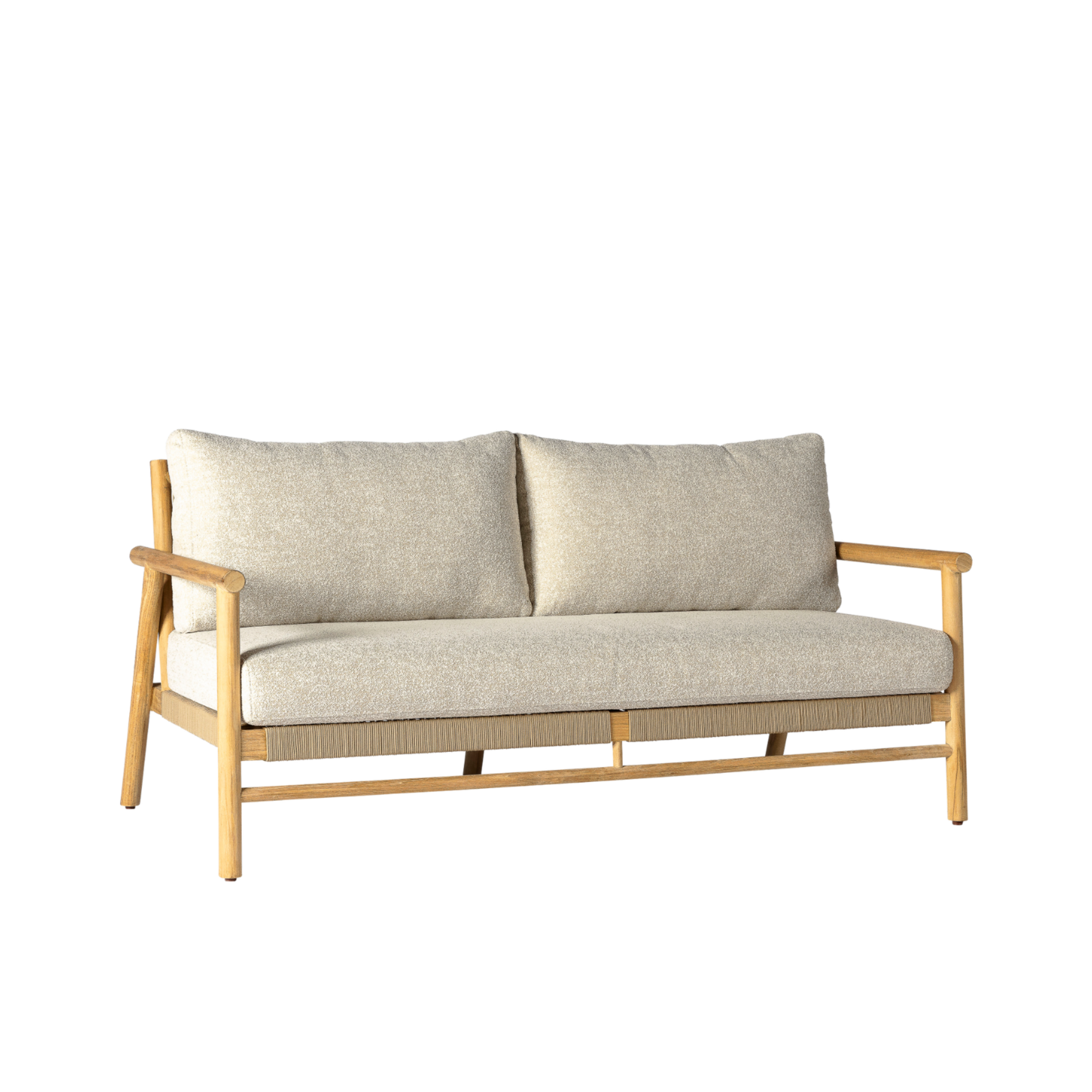 Das 2-Sitzer-Sofa Lorenza ist eine elegante und komfortable Wahl für einen stilvollen Außenbereich. Mit seinem robusten Teakholzrahmen, den sandfarbenen Seildetails und den passenden Allwetter-Kissen bietet dieses Sofa eine perfekte Mischung aus Raffinesse und Komfort. Das einzigartige Geflecht in der Rückenlehne vermittelt ein offenes und luftiges Gefühl, während die großzügigen Kissen für optimalen Sitzkomfort sorgen. Das 2-Sitzer-Sofa Lorenza eignet sich ideal für kleinere Terrassen oder als Teil einer größeren Lounge-Einrichtung und fügt sich nahtlos in die anderen Möbel der Lorenza-Kollektion ein. Genießen Sie entspannende Momente in einer harmonischen und luxuriösen Umgebung.