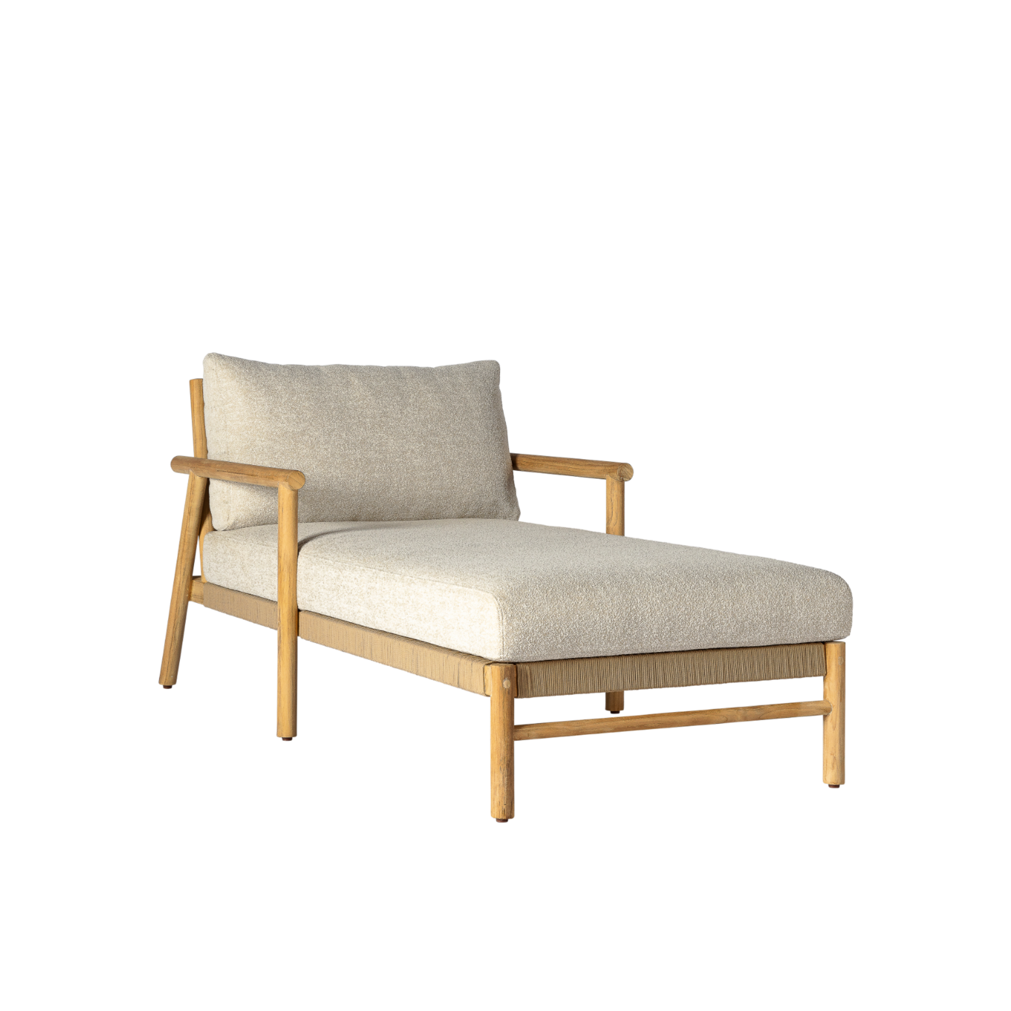 Die Lorenza-Chaiselongue ist das ultimative Möbelstück für entspannten Luxus in Ihrem Außenbereich. Mit ihrem eleganten Teakholzrahmen, dem sandfarbenen Seil und den bequemen, wetterfesten Kissen verbindet diese Chaiselongue Stil mit Funktionalität. Die feste Rückenlehne und die doppelten Armlehnen bieten optimalen Halt, während das raffinierte Geflecht im Rückenbereich ein luftiges Gefühl vermittelt. Verwenden Sie die Lorenza-Chaiselongue als Einzelstück, um eine gemütliche Lounge-Ecke zu schaffen, oder kombinieren Sie sie mit den Lorenza-Sofas für ein nahtloses, stilvolles Arrangement. Perfekt für sonnige Nachmittage oder entspannte Abende im Garten.