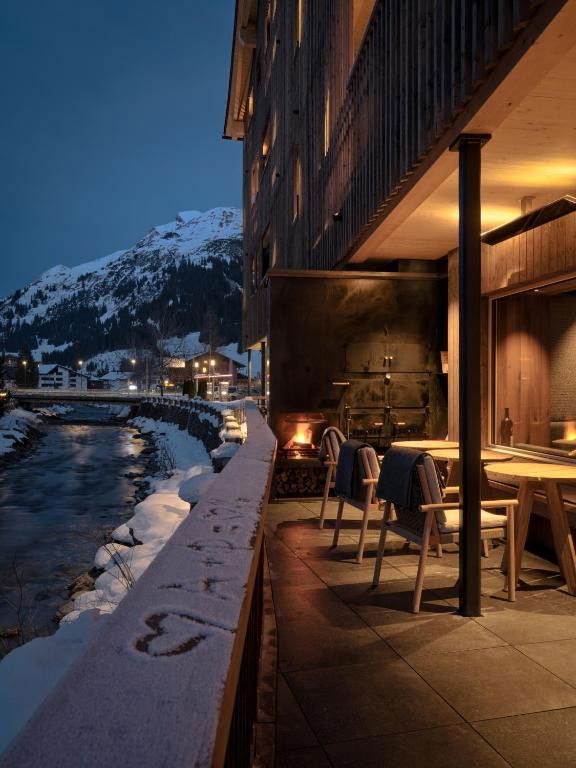 Aan de reling zorgen de Florenza high dining chairs voor een bijzondere beleving. Deze stoelen zijn ontworpen om optimaal te genieten van het indrukwekkende uitzicht over Lech. Het high dining concept van Borek is bewust lager dan een traditionele barkruk en biedt daarmee het comfort van loungen, gecombineerd met precies de juiste hoogte om vrij over een balkon of reling te kijken. Een doordachte oplossing die laat zien hoe design en gebruiksgemak samenkomen in een unieke outdoor setting.