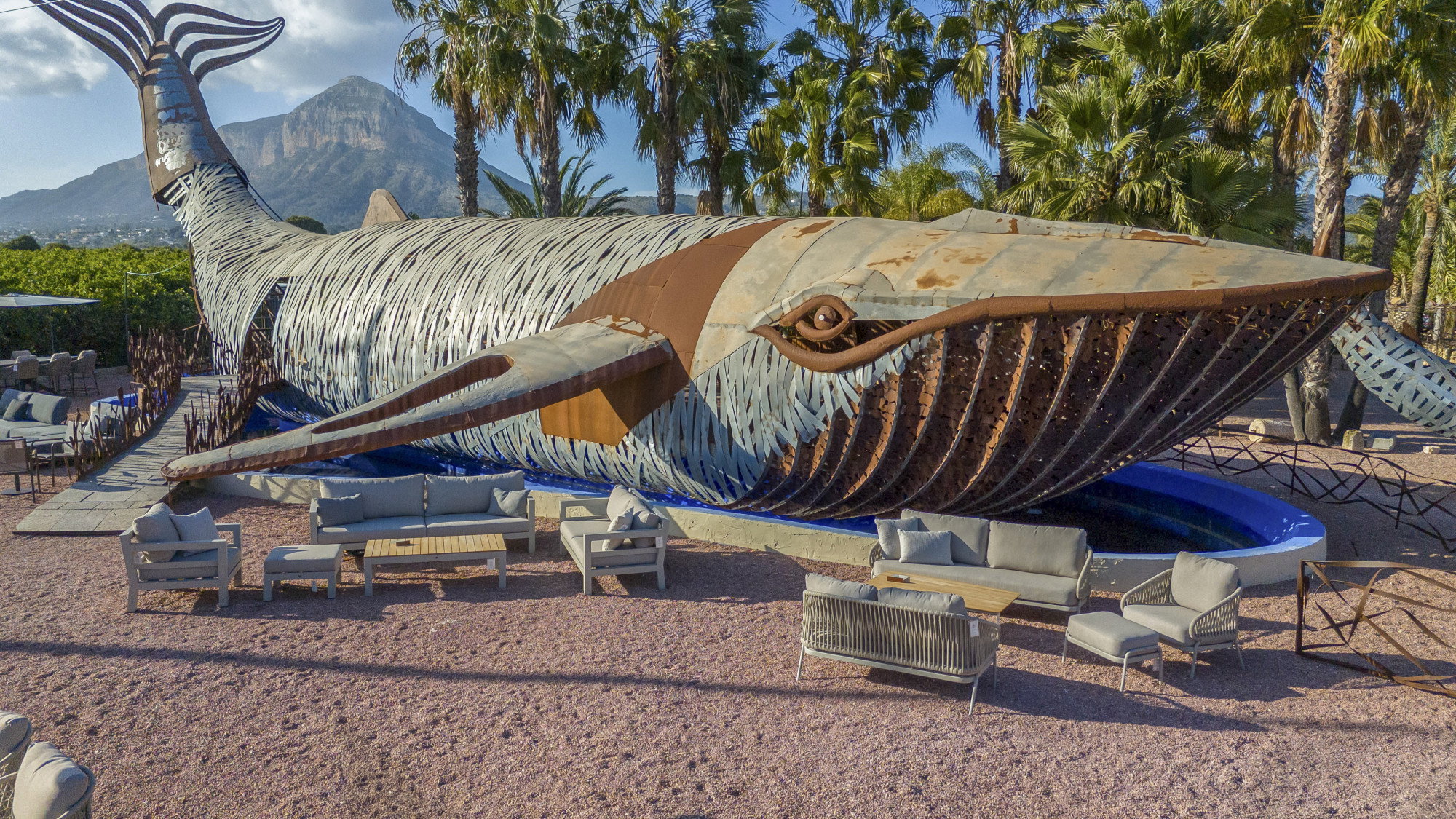 La Fábrica is geen standaard showroom, maar een locatie met een eigen verhaal. De combinatie van design, kunst en vakmanschap maakt deze plek direct bijzonder. De iconische walvis langs de weg trekt de aandacht en markeert de entree, waarna de verbinding met het atelier van kunstenaar Toni Mari zorgt voor een inspirerende omgeving waarin onze collecties vanzelfsprekend tot hun recht komen.