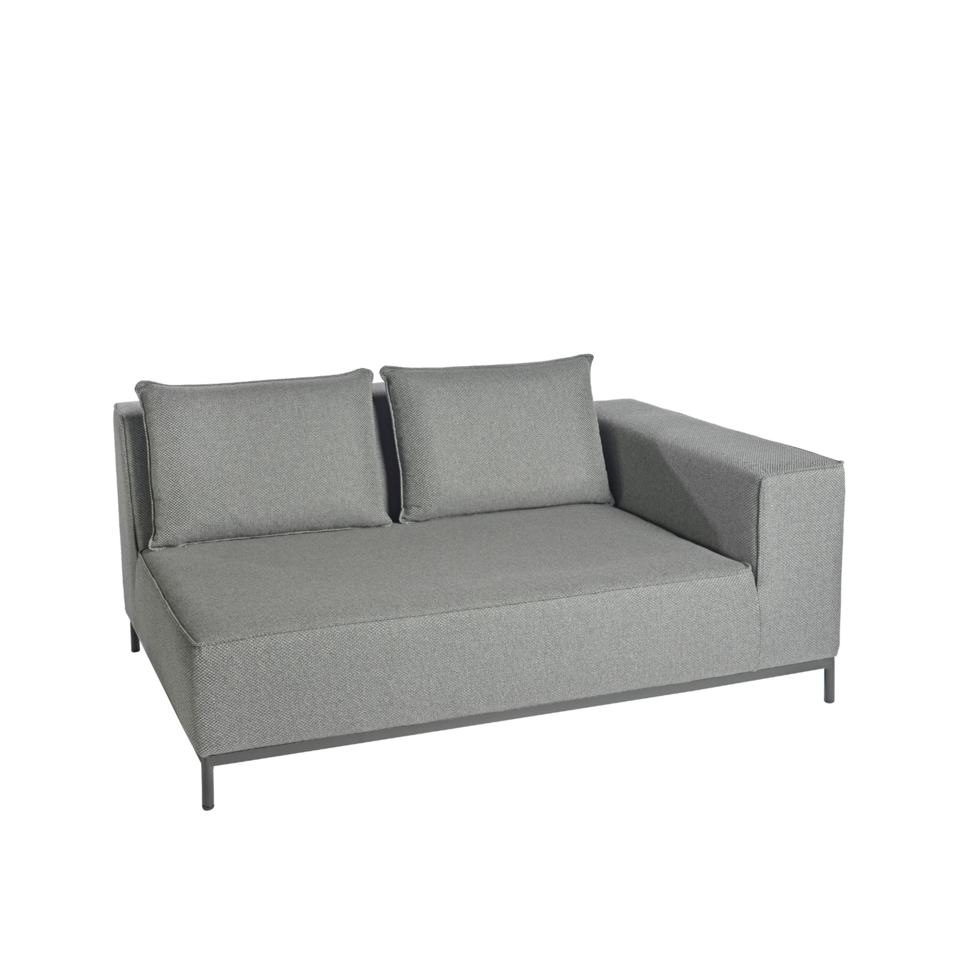 Deze linker eindmodule (2-zitter) is een onderdeel van de West-collectie van Max en Luuk. De meubels zijn volledig gestoffeerd en voorzien van duurzame en hoogwaardige bekleding die geschikt is voor buiten. Het zwarte onderstel van deze module is ideaal te combineren met de Kick en Riff tafels. Deze module kan effectief worden gebruikt om een opstelling naar eigen voorkeur te creƫren.